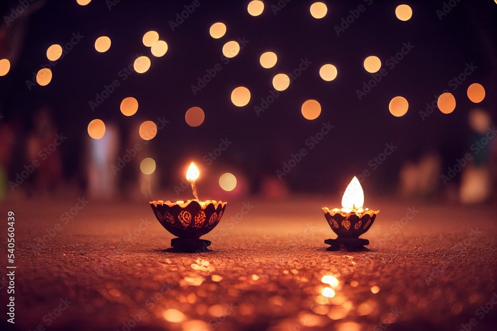 Diwali light festival. Close up of a Christmas candle Stock Photo